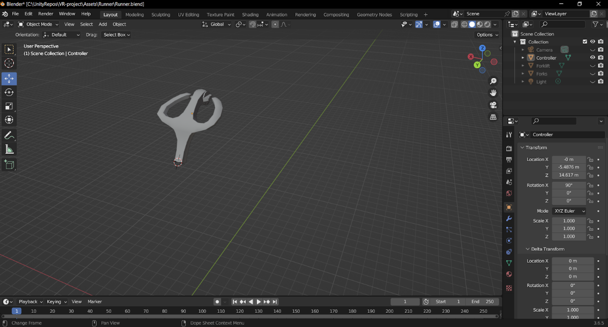 The next step will be the creation of the joystick prefab itself, either just a simple elongated cube that will function as a lever, or a more complex mesh. In this example we will use a mesh created in blender that represents a forklift controller as can be seen in the picture below.